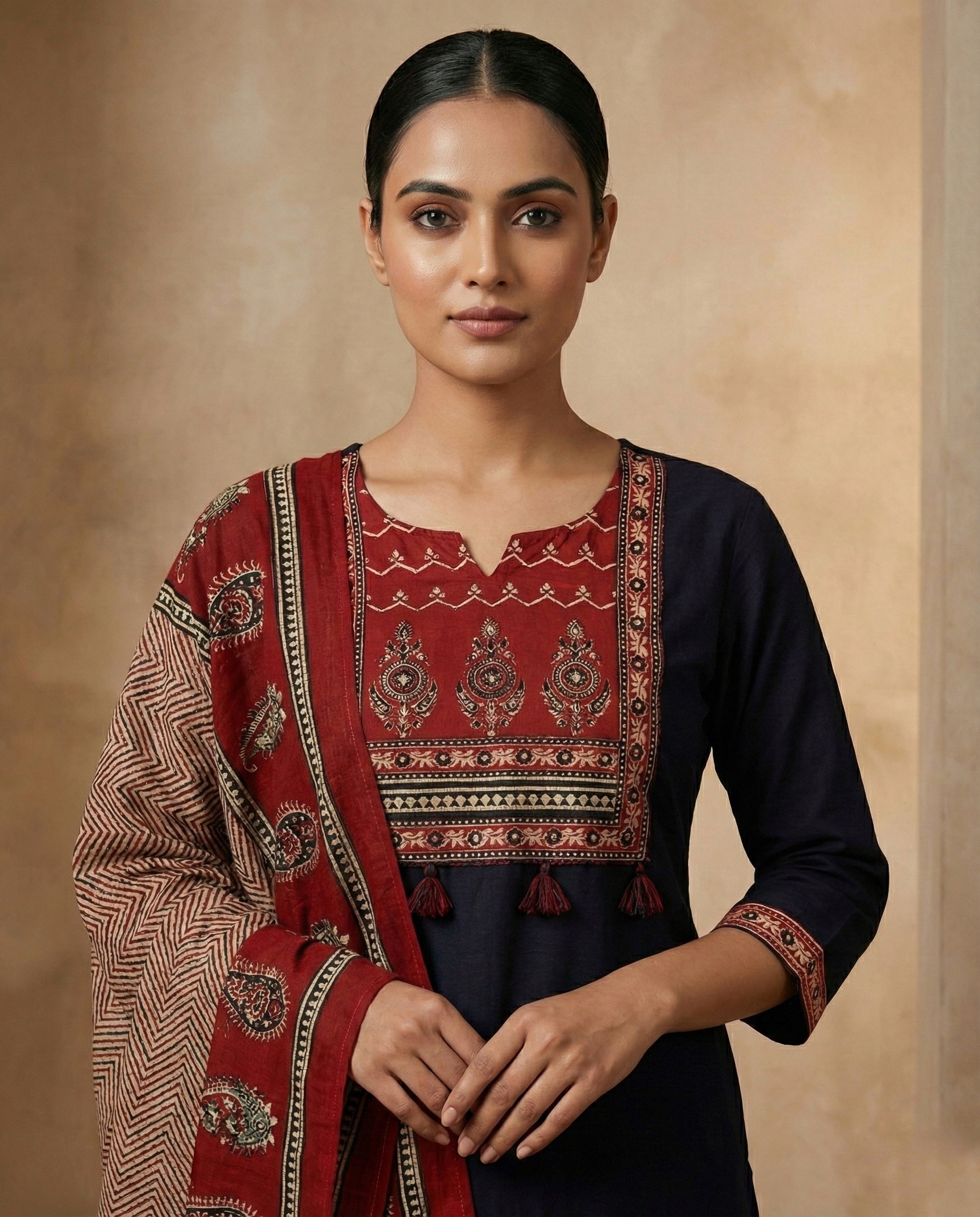 Black Arjakh Cotton Kurti Pant Dupatta Set – Thread & Lace