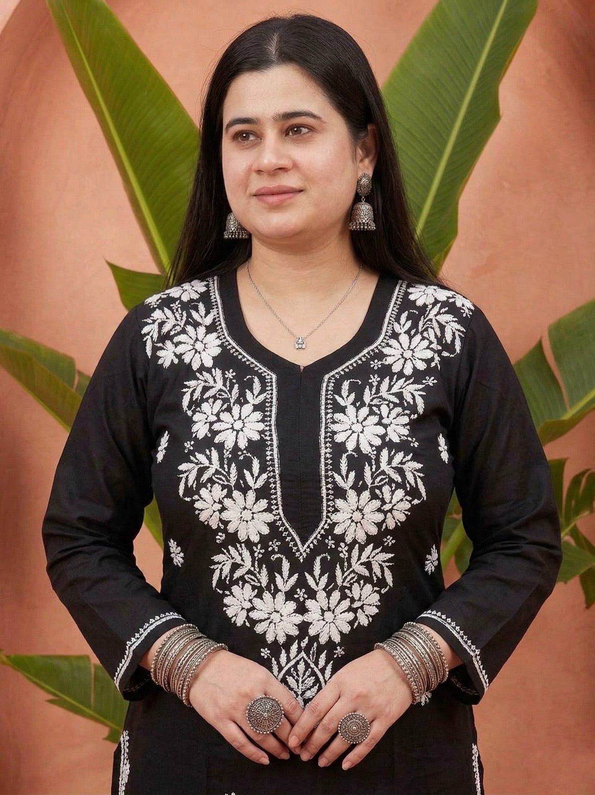 Chikankari Modal Kurti Black